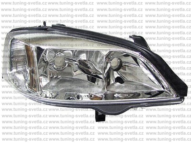Popis: Opel Astra (3/98 - 5/04) přední pravé světlo v chrom provedení. Patice pro žárovky H7+HB3. El. nastavitelné pomocí motorků z originálních světel. Cena za kus.
