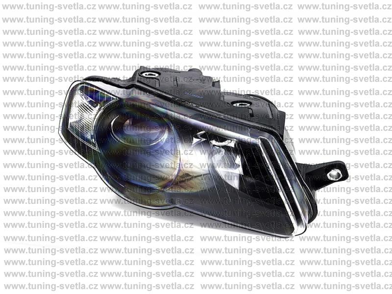 Popis: VW Passat B6 (3/05 - ) přední pravé světlo. Provedení Black. Patice na žárovky H7+H7. El. nastavitelné pomocí motorku-je součástí světla. Cena za kus.