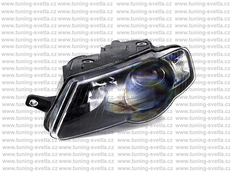 Popis: VW Passat B6 (3/05 - ) přední levé světlo. Provedení Black. Patice na žárovky H7+H7. El. nastavitelné pomocí motorku-je součástí světla. Cena za kus.