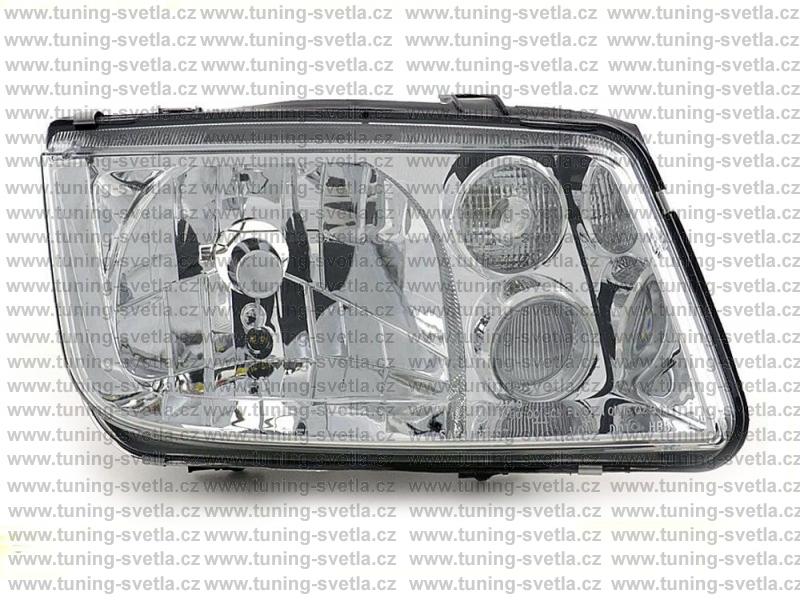Popis: VW Bora (10/1998-07/2005) přední pravé světlo s mlhovkou. Žárovky H3+H4. Cena za kus.