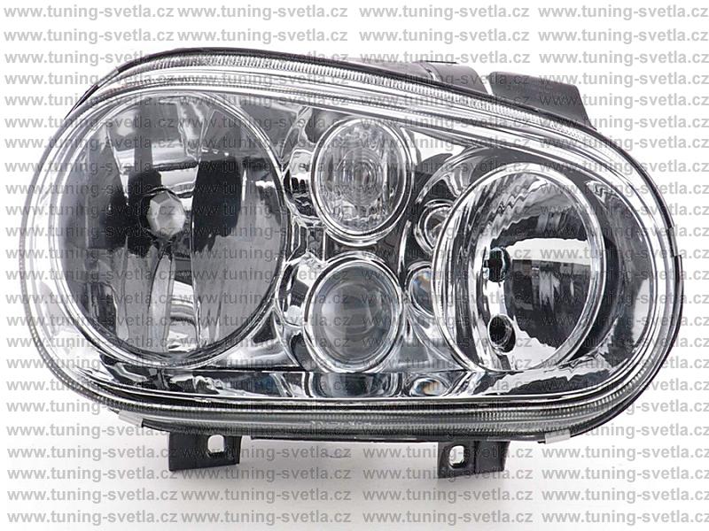Popis: VW Golf 4 přední světlo s mlhovkou - pravé. Patice pro žárovky H1+ H7+H3. Cena za kus.