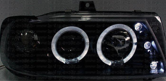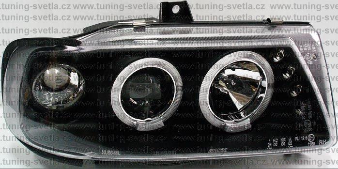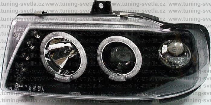 Popis: Seat Cordoba (2/93 - 6/99) přední světla Angel Eyes v černém provedení. Patice pro žárovky H1+ H1. El. nastavitelná pomocí motorků z originálních světel. Cena za pár.