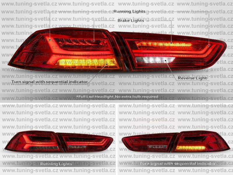 Popis: MITSUBISHI LANCER EVO 10 sedan (2008-2017) zadní LED světla. Cena za pár.