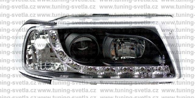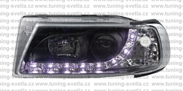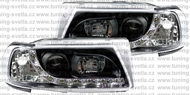 Popis: Seat Cordoba (2/93 - 6/99) přední světla s denním svícením v černém provedení. Patice pro žárovky H1+ H1. El. nastavitelná pomocí motorků z originálních světel. Cena za pár.