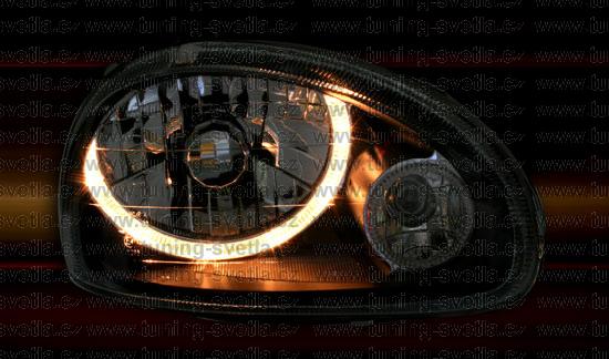 Popis: Opel Corsa (9/93 - 9/00) přední světla Angel Eyes v černém provedení. Patice pro žárovku H4. El. nastavitelná pomocí motorků z originálních světel. Cena za pár.