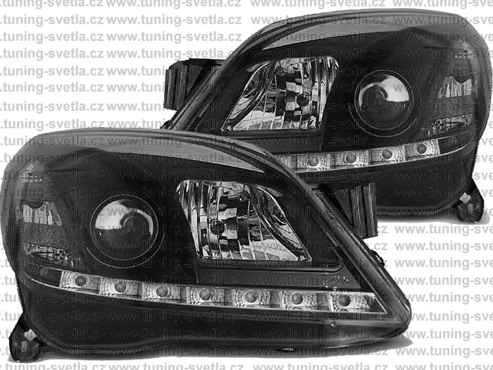 Popis: Opel Astra H (3/04 -2010) přední Day Line světla v černém provedení. Patice pro žárovky H7+H1. Žárovky nejsou součastí světla. S motorkem pro El.naklápění. LED svícení místo parkovacího světla. Cena za pár.