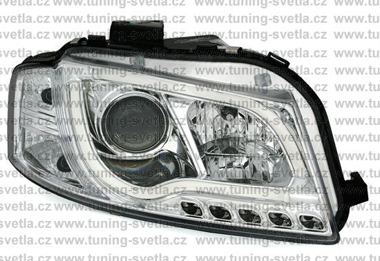 Popis: Audi A3 8P (05/03- 8/06) přední Day Line světla v chrom provedení. LED svícení místo parkovacího světla. Žárovky H1/H1/WY21W jsou součástí světla. Příprava pro el.naklápění. Cena za pár.