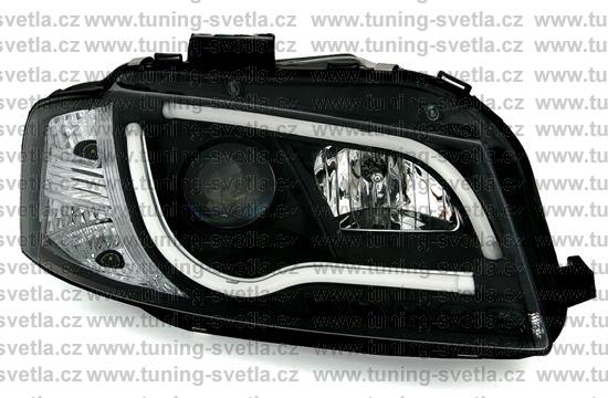 Popis: Audi A3 8P (05/03- 8/06) přední světla s denním svícením v černém provedení. LED svícení místo parkovacího světla. Žárovky H1/H1/WY21W jsou součástí světla. Příprava pro el.naklápění. Cena za pár. Typ světel: TRU DRL - Určeno pro denní svícení.