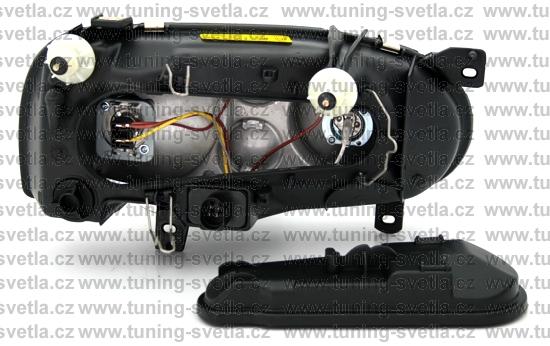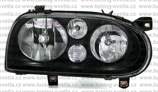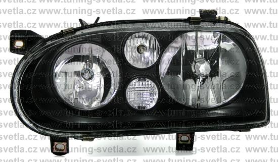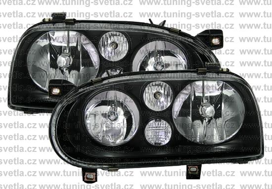 Popis: VW Golf 3 (1991-1998) přední světla v černém provedení. Patice pro žárovky H7+H1. Cena za pár.