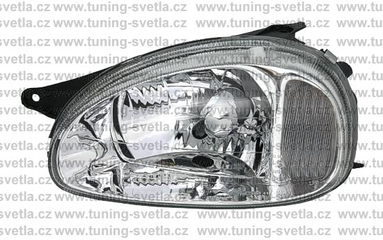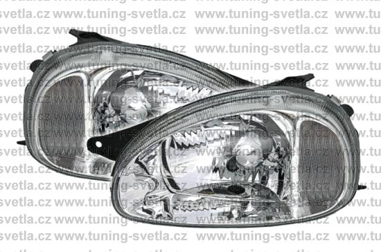 Popis: Opel Corsa (9/93 - 9/00) přední světla v chromovém provedení. Patice pro žárovku H4. El. nastavitelná pomocí motorků z originálních světel. Cena za pár.