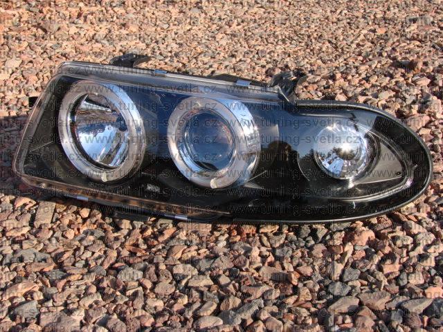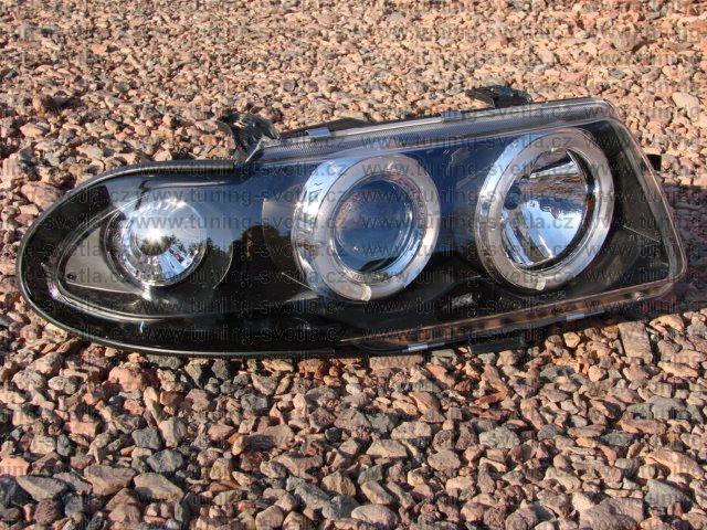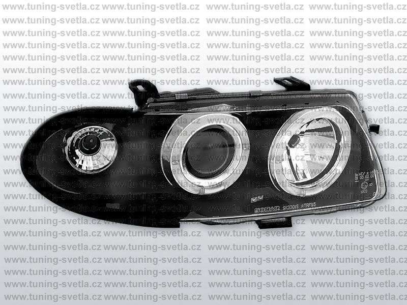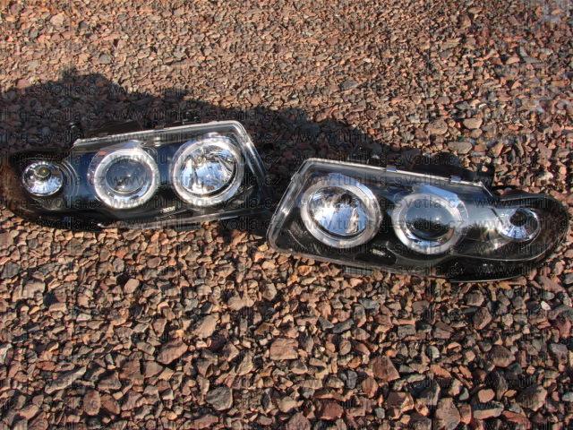 Popis: Opel Astra (10/91 - 2/98) přední světla Angel Eyes v černém provedení. Patice pro žárovky H1+H1. El. nastavitelná pomocí motorků z originálních světel. Cena za pár.