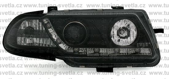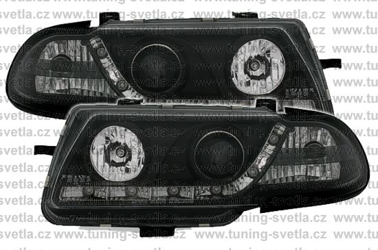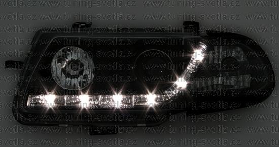Popis: Opel Astra (10/91 - 2/98) přední světla s denním svícením v černém provedení. Patice pro žárovky H1+H1. El. nastavitelná pomocí motorků z originálních světel. Cena za pár.