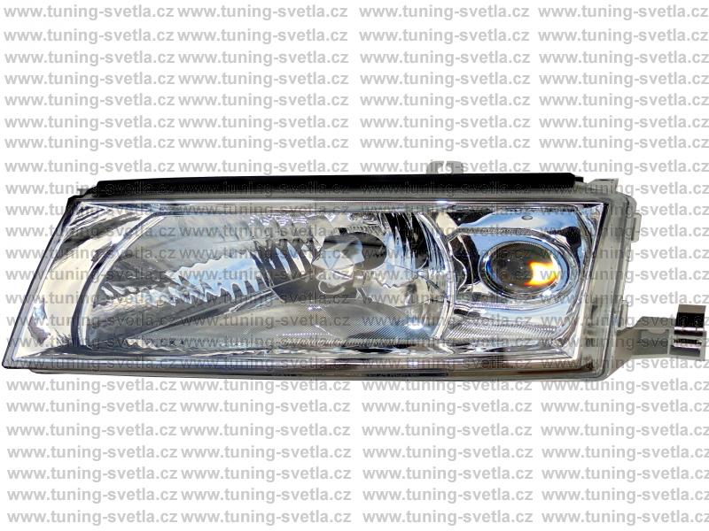Popis: Škoda Octavia facelift (01/2001 - 11/2010) přední levé světlo v chrom provedení. Verze s mlhovkou. Patice pro žárovku H3+H4. Provedení s el.motorkem.