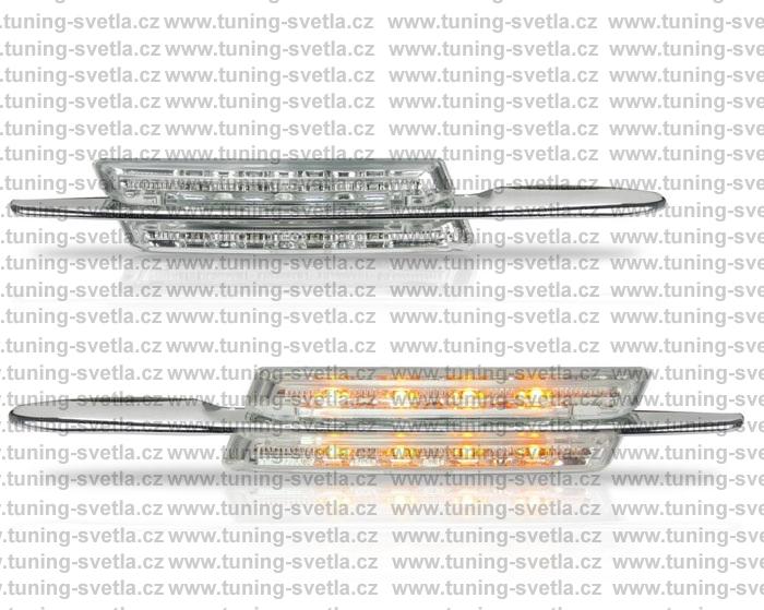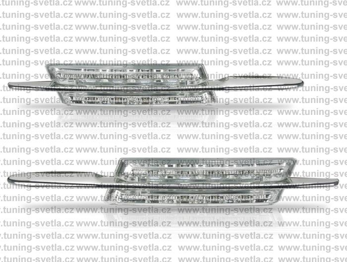 Popis: Boční čiré LED blikače. Pasují na BMW E46 před facelift 1998-2001. Sedan / touring / coupe / cabrio. Každý led blikač má 8 LED. Cena za pár.