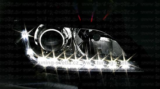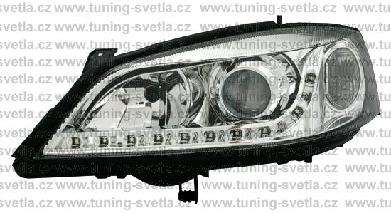Popis: Opel Astra (3/98 - 5/04) přední světla s denním svícením v chromovém provedení. Patice pro žárovky H7+H7. El. nastavitelná pomocí motorků z originálních světel. Cena za pár.