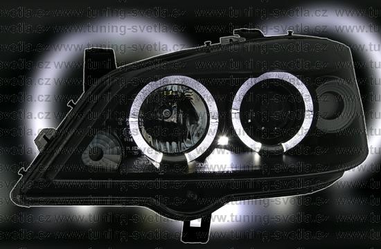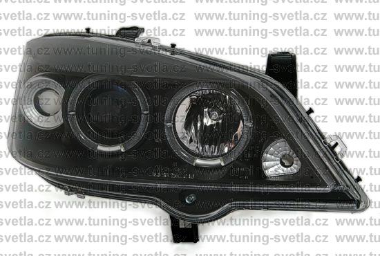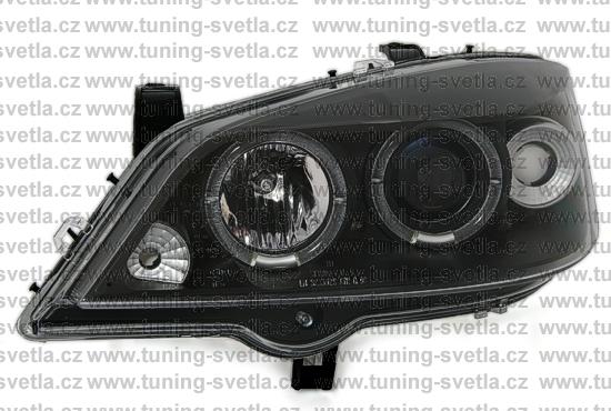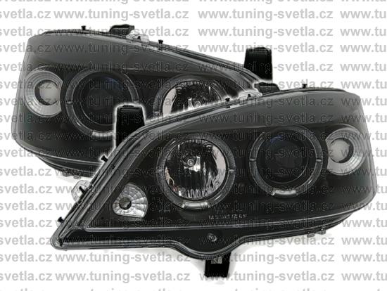 Popis: Opel Astra (3/98 - 5/04) přední světla Angel Eyes v černém provedení. Patice pro žárovky H1+H1. El. nastavitelná pomocí motorků z originálních světel. Cena za pár.