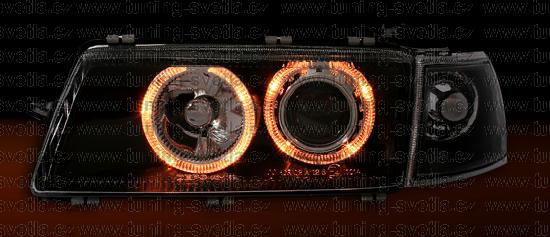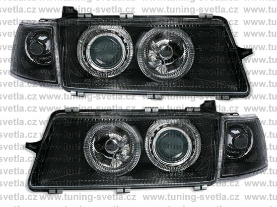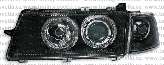 Popis: Opel Vectra (11/92 - 10/95) přední světla Angel Eyes v černém provedení. Patice pro žárovky H7+H7. El. nastavitelná pomocí motorků z originálních světel. Cena za pár.