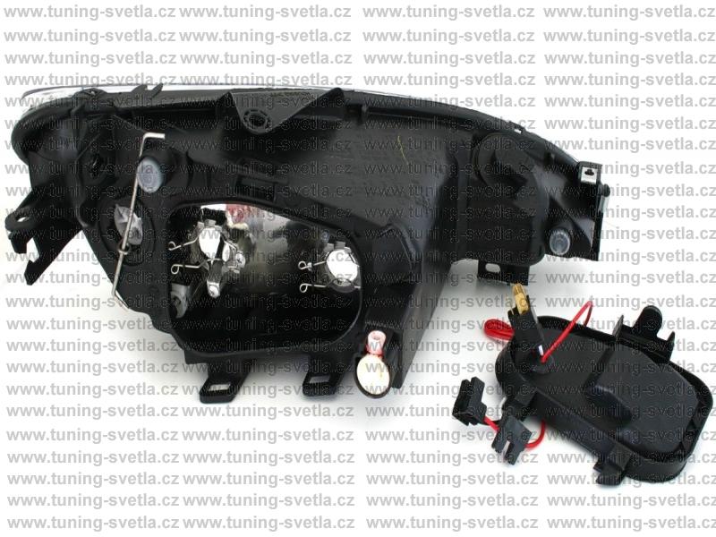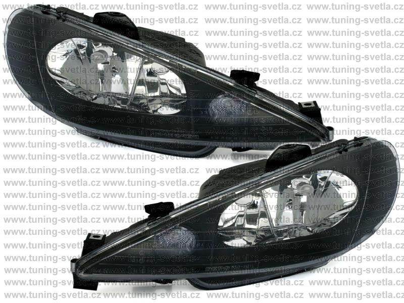 Popis: Peugeot 206 přední světla v černém provedení. Patice pro žárovky H7+ H7. El. nastavitelná pomocí motorků z originálních světel. Cena za pár.