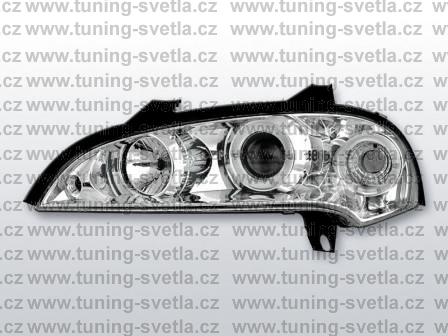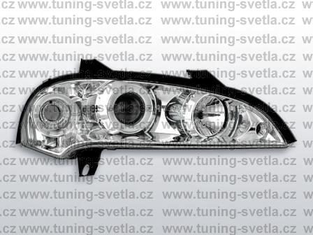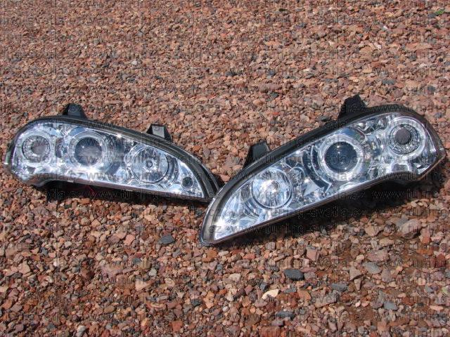 Popis: Opel Tigra (10/94 - 9/00) přední světla Angel Eyes v chromovém provedení. Patice pro žárovky H1+H1. El. nastavitelná pomocí motorků z originálních světel. Cena za pár.
