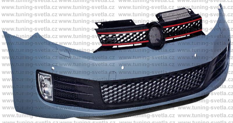 Popis: VW Golf 6 přední nárazník s otvory pro PDC a otvorem pro znak, vzhled GTi. Materiál ABS plast. V sadě je : přední nárazník,mlhovky,maska a mřížky. Nárazník má otvory pro ostřikovače. Material - ABS.