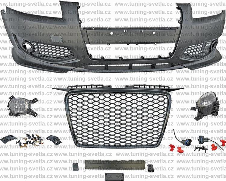 Popis: AUDI A3 8P přední nárazník vzhled S3. Pouze pro vozy bez ostřikovačů předních světel a bez předních PDC senzorů. Nárazník pasuje místo originálního nárazníku na standartní uchycení. Materiál: ABS plast (ne levný FRP)