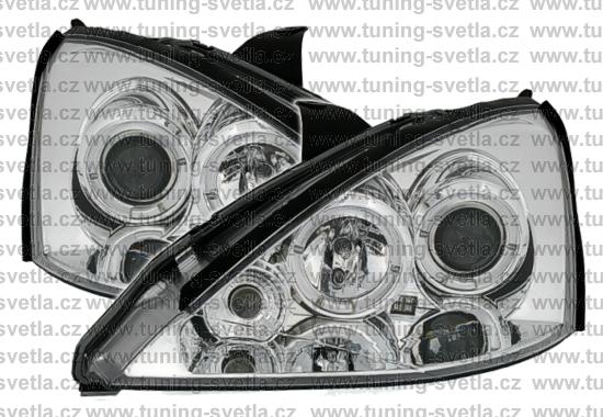 Popis: Ford Focus (10/98 - 09/01) přední světla Angel Eyes v chromovém provedení. Patice pro žárovky H1+H1. El. nastavitelná pomocí motorků z originálních světel. Cena za pár.