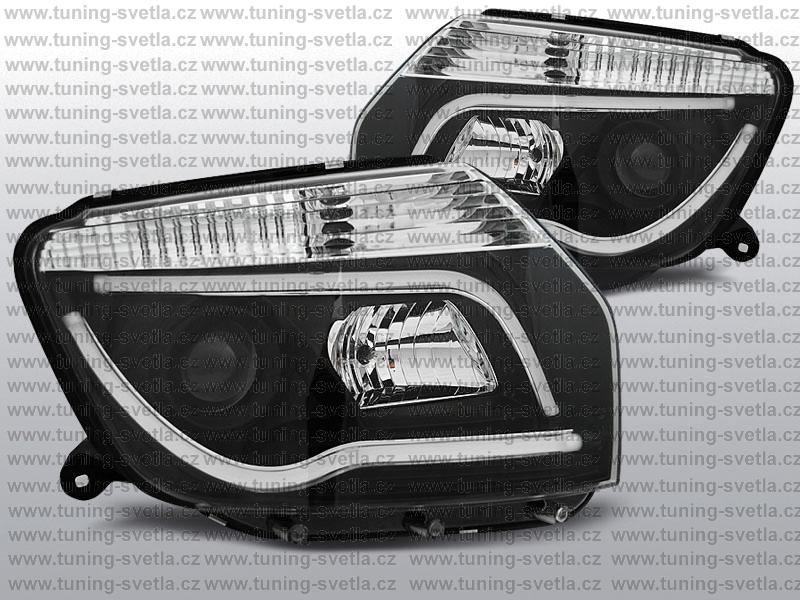 Popis: Dacia Duster (01/2010-10/2013) přední světla BLACK TUBE LIGHT. LED pásek místo parkovacího světla. Patice H7+H1. Žárovky jsou součastí světel. El. nastavitelné pomocí motorků z originálních světel. Cena za pár. Provedení - Black.