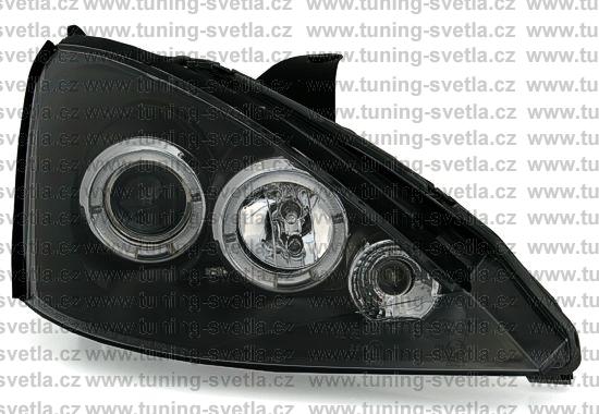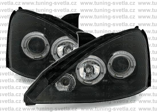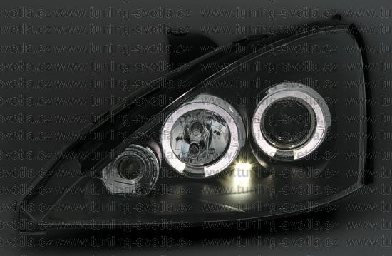 Popis: Ford Focus (10/98 - 09/01) přední světla Angel Eyes v černém provedení. Patice pro žárovky H1+H1. El. nastavitelná pomocí motorků z originálních světel. Cena za pár.