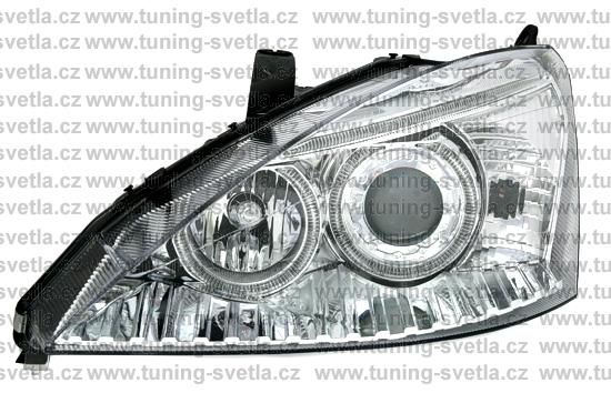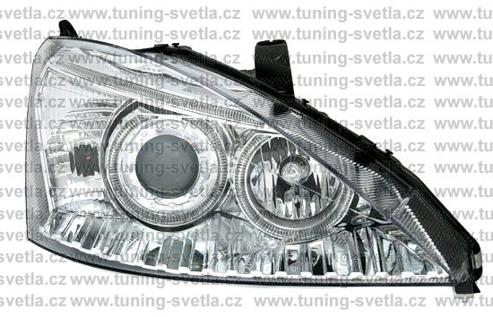 Popis: Ford Focus (10/98 - 09/01) přední světla Angel Eyes v chromovém provedení. Patice pro žárovky H7+H7. El. nastavitelná pomocí motorků z originálních světel. Cena za pár.