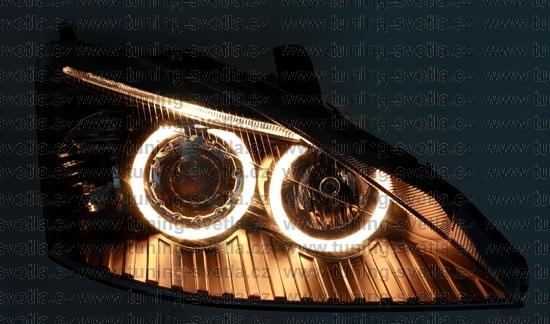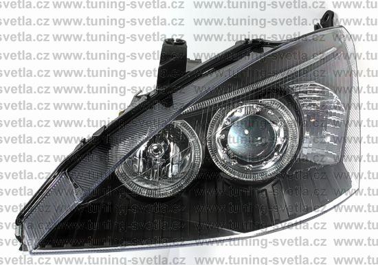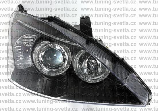 Popis: Ford Focus (10/98 - 09/01) přední světla Angel Eyes v černém provedení. Patice pro žárovky H7+H7. El. nastavitelná pomocí motorků z originálních světel. Cena za pár.