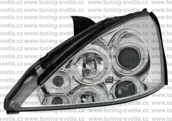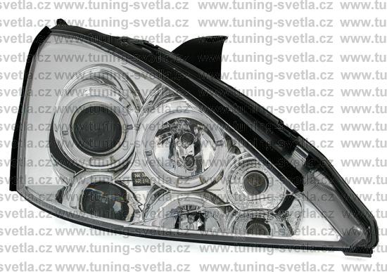 Popis: Ford Focus (11/01 - 12/04) přední světla Angel Eyes v chromovém provedení. Patice pro žárovky H1+H1. El. nastavitelná pomocí motorků z originálních světel. Cena za pár.