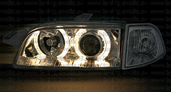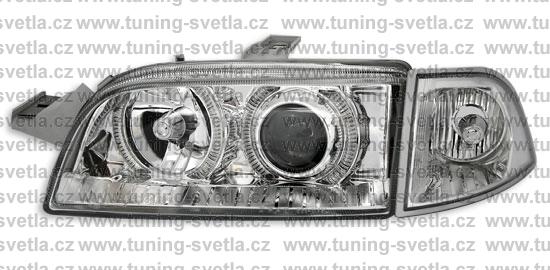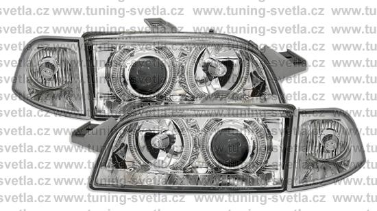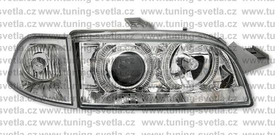 Popis: Fiat Punto (11/93 - 8/99) přední světla Angel Eyes v chromovém provedení. Patice pro žárovky H7+H7. El. nastavitelná pomocí motorků z originálních světel. Cena za pár.