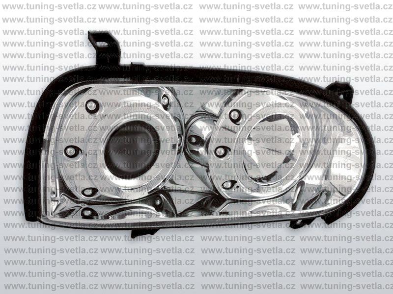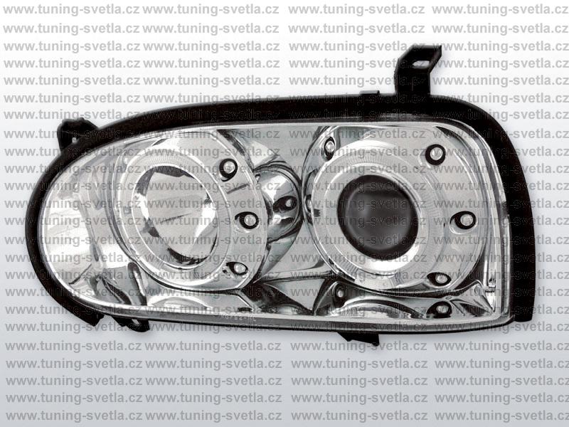 Popis: Vw Golf 3 (1991-1998) přední Angel Eyes světla v chromovém provedení. Patice pro žárovky H7+H7. Cena za pár.