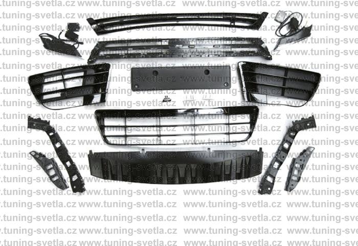 Popis: VW Scirocco (2008-04/2014) přední nárazník vzhled R Style. Přední nárazník s maskou, středovou a boční mřížkou v černé lesklé barvě a denním svícením LED (DRL)