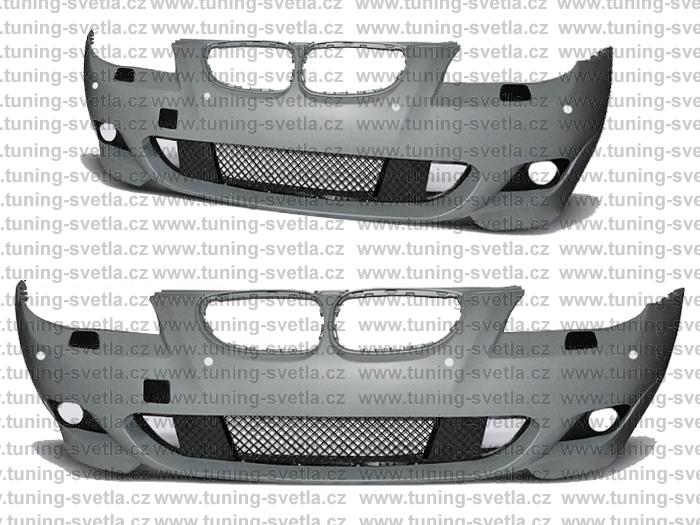 Popis: BMW E60/E61 (2003-2007) Přední nárazník s PDC typ M-Paket. Sada obsahuje : přední nárazník,sací středová mřížka,krytka na tažné oko,krytky ostřikovačů a rámečky kolem předních mlhovek. Přední mlhovky nejsou v ceně! Pasuje místo originálního nárazníku.