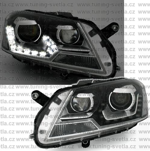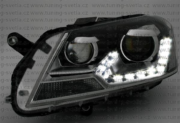 Popis: VW Passat B7 (08/2010-11/2014) přední Day Line světla. LED svícení místo parkovacího světla. Patice pro žárovky H7+H7. El.motorek je součástí světla. Cena za pár.