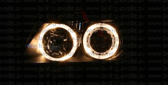 Popis: BMW E90+E91 přední světla Angel Eyes v černém provedení. Patice pro žárovky H7+H7. El. nastavitelná pomocí motorků z originálních světel. Cena za pár.