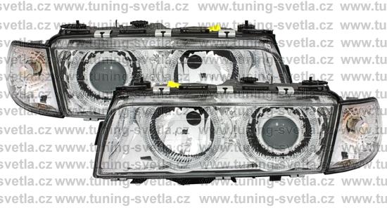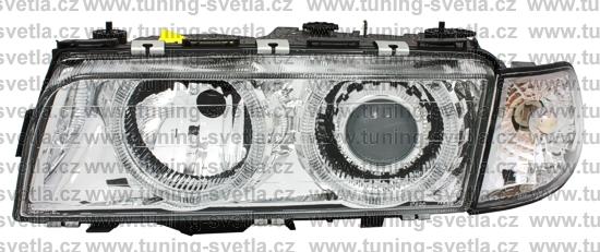 Popis: BMW E38 (6/94 - 8/98 ) přední světla Angel Eyes v chromovém provedení. Patice pro žárovky H7+H7. El. nastavitelná pomocí motorků z originálních světel. Cena za pár.