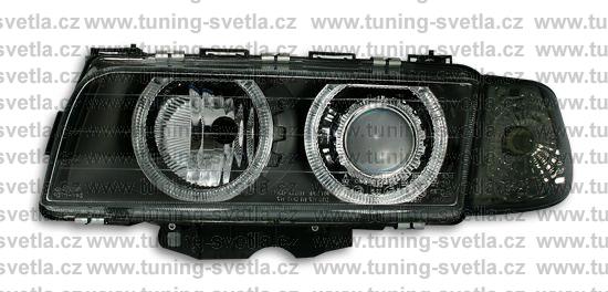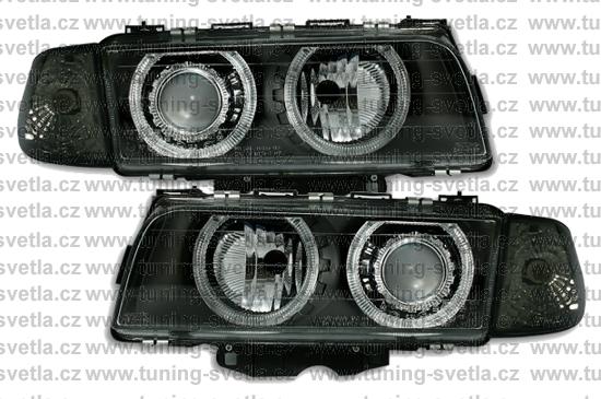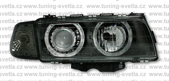 Popis: BMW E38 (6/94 - 8/98 ) přední světla Angel Eyes v černém provedení. Patice pro žárovky H7+H7. El. nastavitelná pomocí motorků z originálních světel. Cena za pár.