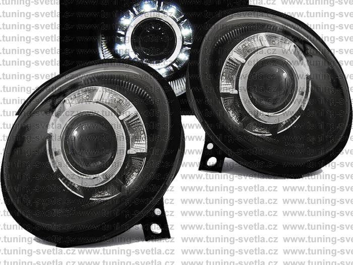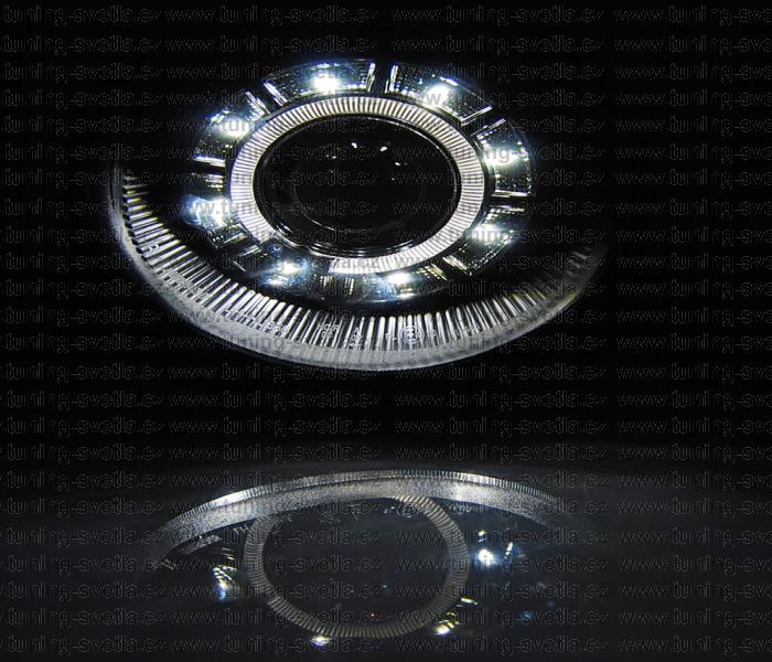 Popis: VW Lupo 6X (1998-2005) přední Day Line světla v černém provedení. LED svícení místo parkovacího světla + Angel Eyes kroužek. Patice pro žárovku H9, která je součásti balení. El. nastavitelná pomocí motorků z originálních světel.