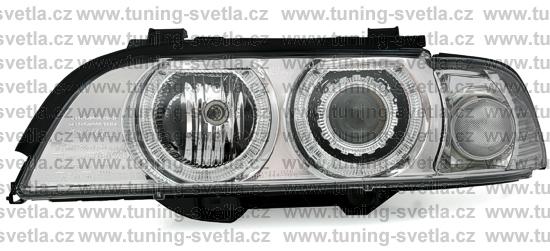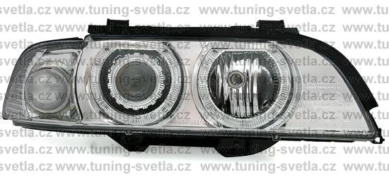 Popis: BMW E39 (9/95 - 8/00) přední světla Angel Eyes v chromovém provedení. Patice pro žárovky H7+H7. El. motorky jsou součastí světel. Cena za pár.
