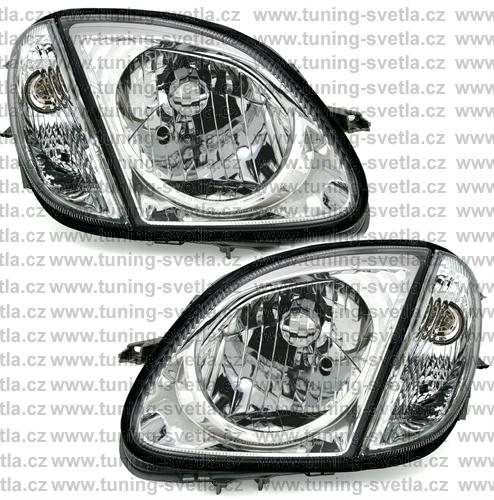 Popis: Mercedes SLK R170 (04/1996-04/2004) přední světla v chrom provedení. Příprava pro pneumatické naklápění. Patice pro žárovku H4. Cena za pár.