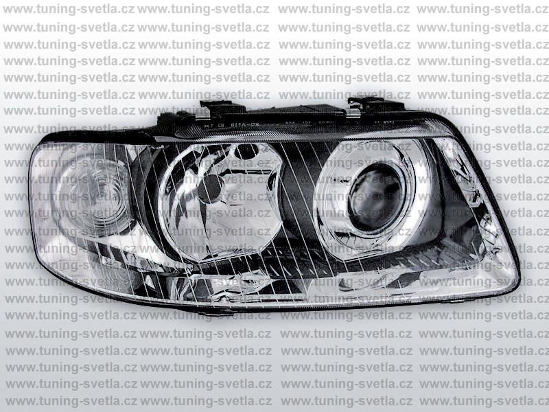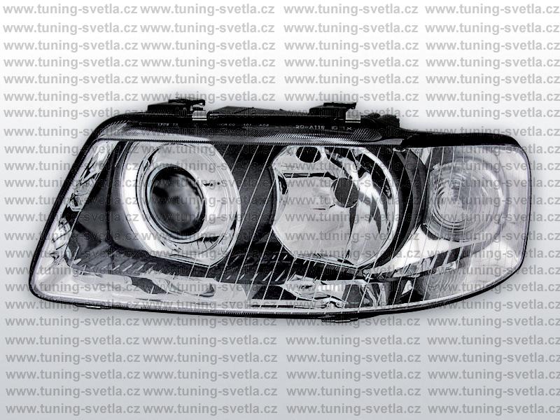 Popis: Audi A3 (9/00 - 3/03) přední světla v chromovém provedení. Patice pro žárovky H1+H7. El. nastavitelná pomocí motorků z originálních světel. Cena za pár.
