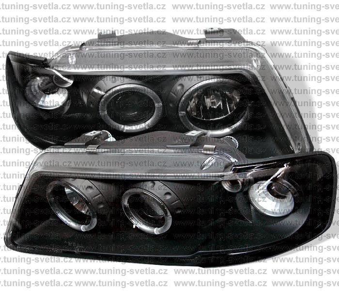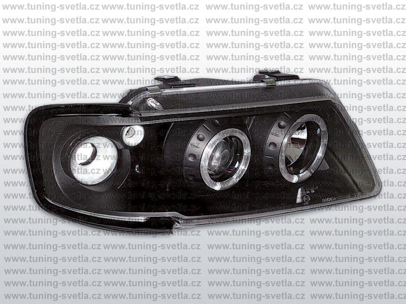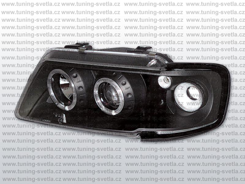 Popis: Audi A3 (8/96 - 8/00) přední světla Angel Eyes v černém provedení. Patice pro žárovky H1+H1. El. nastavitelná pomocí motorků z originálních světel. Cena za pár.