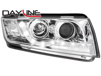 Popis: Škoda Fabia (12/99 - 3/07) přední světla Dayline v provedení chrom. Led svícení místo parkovacího světla. Žárovky H1+H1. Cena za pár.