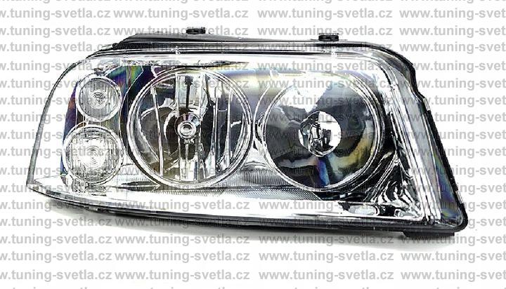 Popis: VW Sharan (04/2000-04/2010) pravé přední světlo s chrom rámečkem. Patice pro žárovky H1 + H7. El.motorek je součástí světla. Cena za kus.