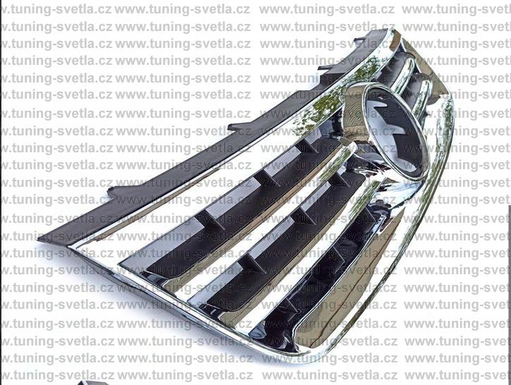 Popis: VW Touareg (10/02-11/06) přední maska bez znaku v black/chrom provedení. Rychlá a snadná montáž na auto.