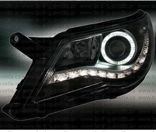 Popis: VW Tiguan (2007 - 03/2011) přední černá Angel Eyes světla CCFL + LED pásek. Patice pro žárovky H1 + H7. El. motorky jsou součástí světel. Led pásek místo parkovacího světla. Cena za pár.
