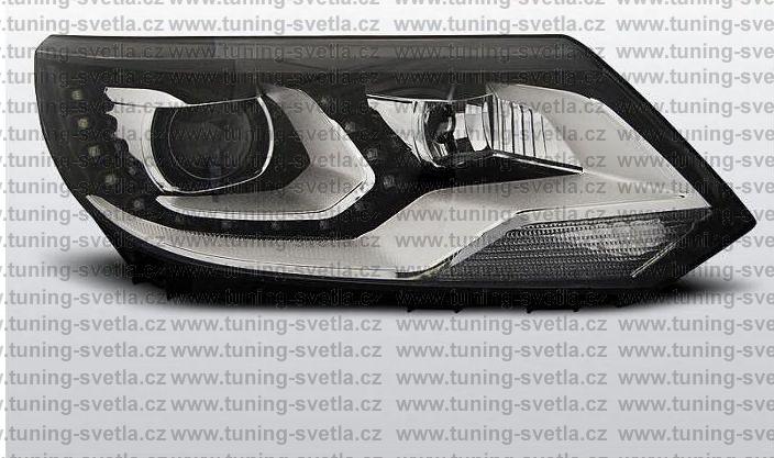 Popis: VW Tiguan 7N (2011-) přední černá světla s denním svícením DRL. Patice pro žárovku H7. El.motorek je součástí světla. Cena za pár.