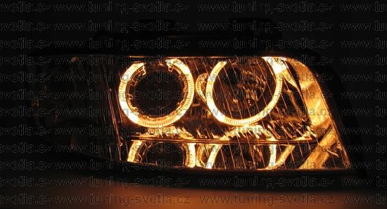 Popis: Audi A6 (5/97 - 9/99) přední světla Angel Eyes v černém provedení. Patice pro žárovky H7+H7. El. nastavitelná pomocí motorků z originálních světel. Cena za pár.